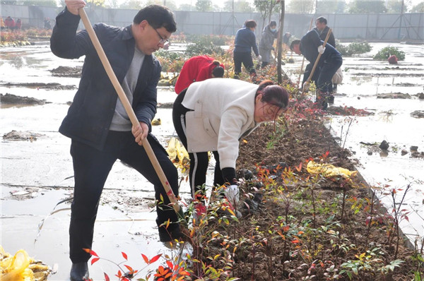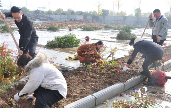 大家動作熟練、配合默契,顧不上汗水與泥濘,有的把泥挖松,有的把樹苗扶正,每一道工序都做得一絲不茍。一番緊張的勞動后,一棵棵新栽的紅葉石楠和一排排的南天竹錯落有致、迎風挺立,為春天的奧特萊斯購物廣場增添了更多綠意。
