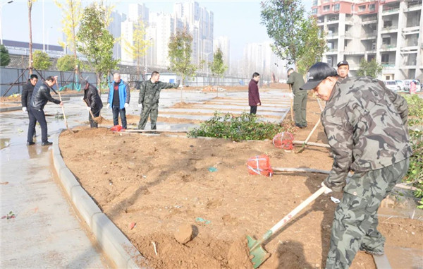 唐河外灘萬家物業植樹現場一片繁忙和熱鬧,這邊抬樹,那邊挖坑;這邊培土,那邊澆水……植樹進行中,還吸引了小區熱心群眾前來參加,現場人頭攢動,一時間勾勒出一副非常和諧感人的畫面。