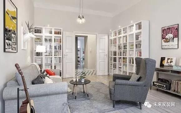 墻面刷上米白色乳膠漆,地面鋪上灰色的木地板,沒有去定制滿墻的儲物柜,更沒有個性化設計的電視背景墻,面積緊湊的空間卻讓人感覺如此的舒服。白色的儲物柜隨意的放置在角落,提升空間的收納能力,看起來的裝飾效果也不錯,看似簡單的裝修效果卻也顯得如此精致。