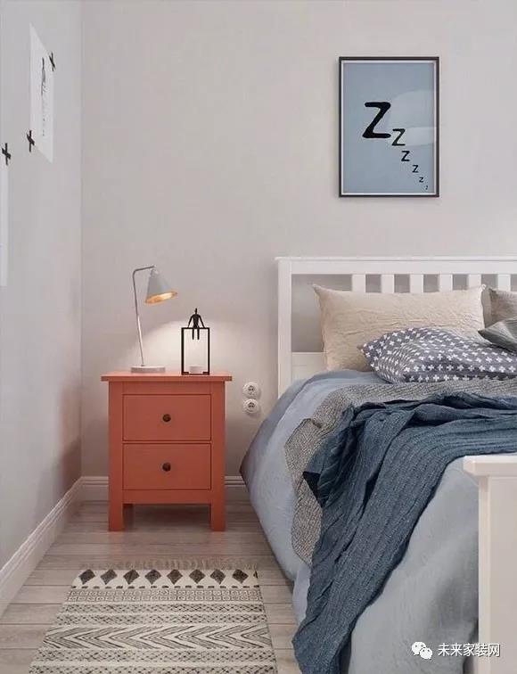 角落里放上一張紅色的床頭柜,裝扮空間的同時也給生活一絲驚喜。